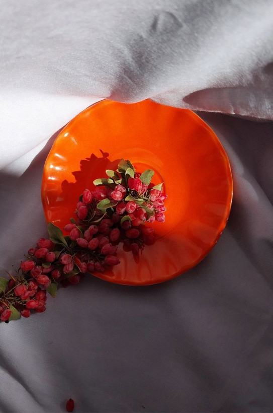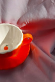 ماگ و نعلبکی سرامیکی دستساز برند طرح پرتقال (نارنجی) ارتفاع ۶ سانت
