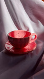 ماگ و نعلبکی سرامیکی دستساز طرح اسپیلش (صورتی) قابل شستشو در ماشین ظرفشویی